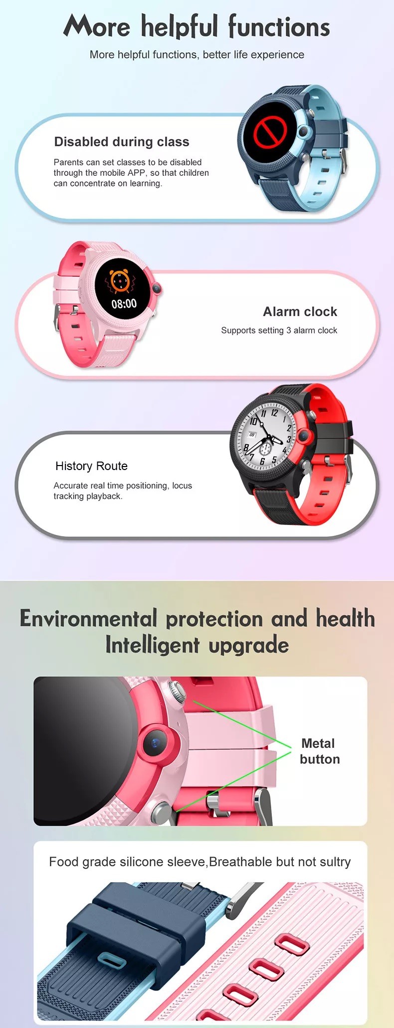 3. Others: Vibration, No disturbing time, SMS alerts(Low battery alert/SOS alert), Remote shutdown, Alarm clock, Watch finder, Math game, Class schedule, Camera, Calculator, Stopwatch, and more;